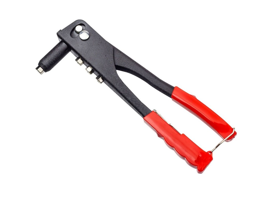 Possui ponteiras para 4 bitolas diferentes de rebites.