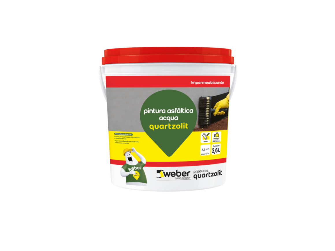 pintura asfáltica acqua quartzolit é uma membrana com base asfáltica, para a impermeabilização de alicerces, baldrames e muros.